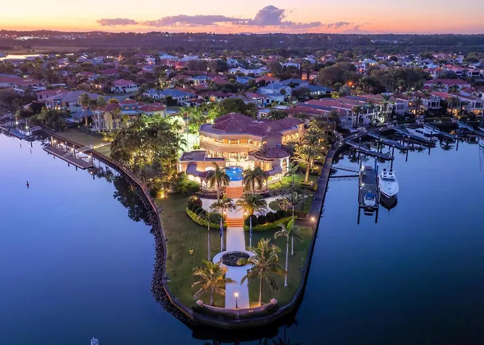 Situated approximately a 10-minute drive from Coomera Waters Marina, the 6-bedroom Bellagio Gold Coast Villa features a terrace with views of the garden.